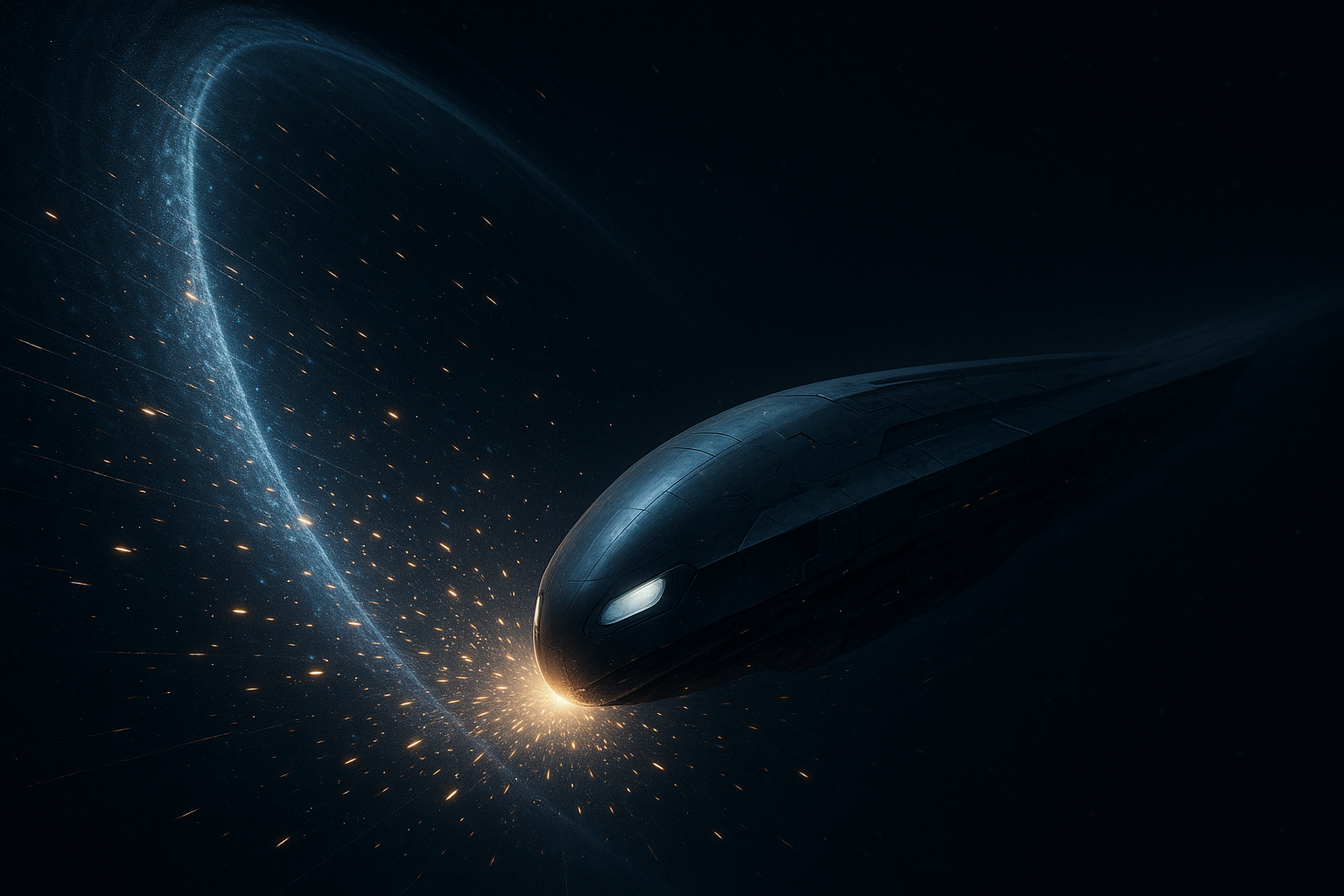最後にもう一つ、大きな壁があります。高速(光速に近い)への加速そのものに必要なエネルギーです。ざっくり言うと、1トンの質量を 0.9c に加速するためのエネルギーはとてつもなく大きく、日本全体の年間電力消費の何十倍という数字になります。